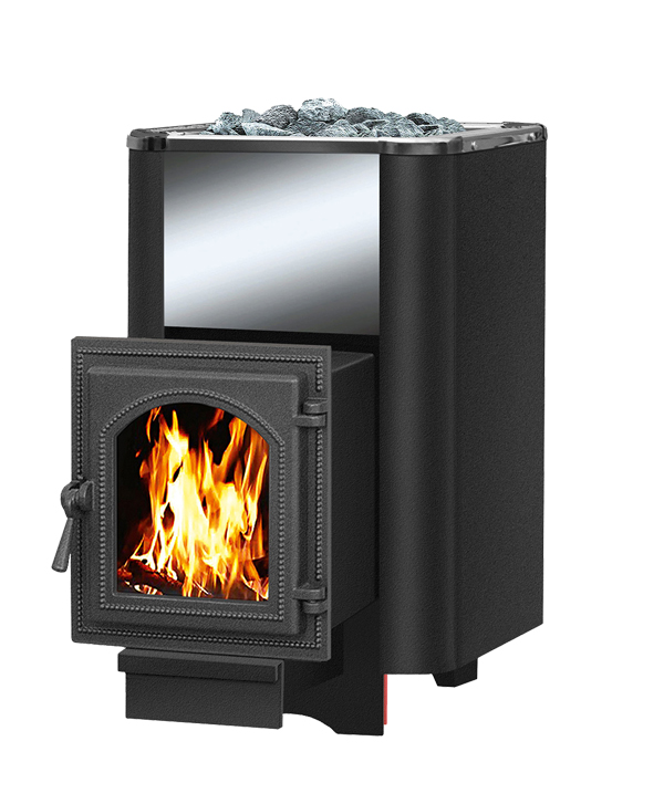 Банная чугунная печь Сенсация 16 (270) укомплектована чугунной герметичной дверцей Везувий 227 с жаропрочным стеклом «SHOT ROBAX».
